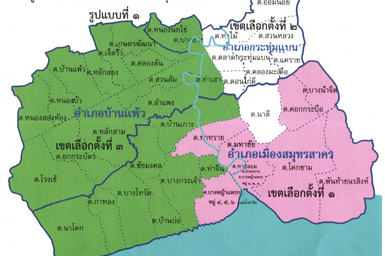 ผู้สื่อข่าวรายงานว่า ตามที่คณะกรรมการการเลือกตั้ง กกต. (กลาง ) โดยนายอิทธิพร บุญประคอง ในฐานะประธานกรรมการการเลือกตั้ง ได้ลงนามในประกาศคณะ กกต. เรื่อง จํานวนสมาชิกสภาผู้แทนราษฎร (ส.ส.) แบบแบ่งเขตเลือกตั้ง จํานวนเขตเลือกตั้งและท้องที่ กรณีที่ประกอบเป็นเขตเลือกตั้ง ส.ส. เพื่อใช้ประกอบเป็นเขตเลือกตั้ง นนี้ ว่า ในส่วนของ จ.สมุทรสาคร โดยมี นายพงษ์พัชน์ สายช่างทอง ฐานะผู้อำนวยการ สนง.กรรมการการเลือกตั้งประจำจังหวัดสมุทรสาคร รายงานถึงเคยมีการเสนอรูปแบบของการแบ่งเขตการเลือกตั้ง ส่งไปให้ กกต.กลาง รวมทั้งสิ้น 3 แบบด้วยกัน