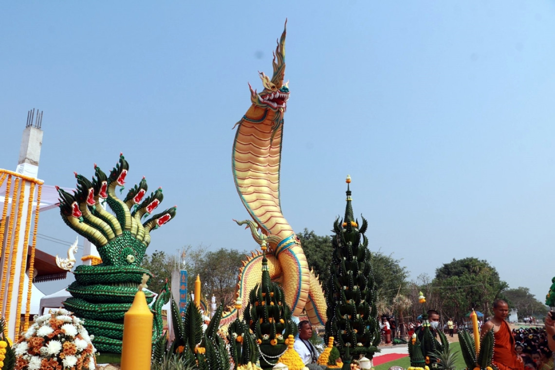 วันที่ 20 มี.ค.66 ณ มณฑลพิธีหน้าองค์พญานาคราช วัดท่าสะแบง ตำบลมะบ้า อำเภอทุ่งเขาหลวง จังหวัดร้อยเอ็ด พลเรือเอก พิเชฐ ตานะเศรษฐ อดีตรองปลัดกระทรวงกลาโหม เป็นประธานฝ่ายฆราวาส ในพิธีบวงสรวง ฉลองสมโภชองค์พญานาคราช พ่อปู่พญาศรีสุวรรณนาคาธิบดี แม่ย่าศรีประทุมมานาคเทวี ซึ่งได้รับความเมตตาจาก พระพรหมวชิรโสภณ ที่ปรึกษาเจ้าคณะภาค 10 (ธ) เป็นประธานฝ่ายสงฆ์ นำพระเถรานุเถระประกอบพิธี โดยมี นายทรงพล ใจกริ่ม ผู้ว่าราชการจังหวัดร้อยเอ็ด นางสิริวิมล พงษ์อักษร นายกเหล่ากาชาดจังหวัดนราธิวาส รองผู้ว่าราชการจังหวัดร้อยเอ็ด หัวหน้าส่วนราชการ ศิษยานุศิษย์ และประชาชน ที่มีจิตศรัทธาหลั่งไหลเข้าร่วมงานเป็นจำนวนมาก