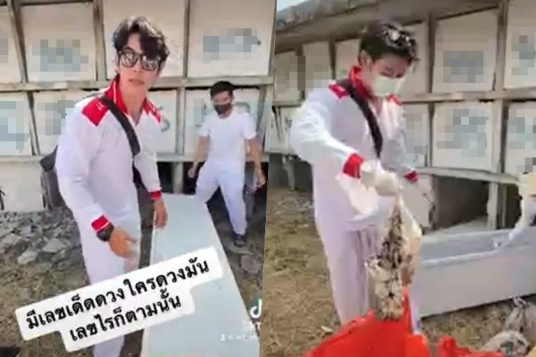 ในคลิปจะเห็นเลขซองที่ไว้ศพจำนวนมาก โดยหนุ่มอาร์ตได้ลงข้อความบรรยายอีกว่า "มีเลขเด็ดดวงใครดวงมัน เลขไรก็ตามนั้น"