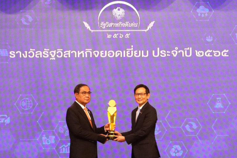 พล.อ.ประยุทธ์ จันทร์โอชา รักษาการนายกรัฐมนตรี มอบรางวัลรัฐวิสาหกิจยอดเยี่ยมประจำปี 2565 (SOE Award) ให้แก่ อรรถพล ฤกษ์พิบูลย์ ประธานเจ้าหน้าที่บริหารและกรรมการผู้จัดการใหญ่ บริษัท ปตท. จำกัด (มหาชน) (ปตท.) โดย ปตท. รับรางวัลรวม 7 รางวัล ประกอบด้วย รางวัลรัฐวิสาหกิจยอดเยี่ยมประจำปี รางวัลคณะกรรมการรัฐวิสาหกิจดีเด่น (เกียรติยศ) รางวัลการบริหารจัดการองค์กรดีเด่น รางวัลการพัฒนาสู่รัฐวิสาหกิจยั่งยืน รางวัลการดำเนินงานเพื่อสังคมและสิ่งแวดล้อมดีเด่น รางวัลความคิดสร้างสรรค์และนวัตกรรมดีเด่น ด้านความคิดสร้างสรรค์ : ไม้เก็บสารคัดหลั่ง Micro Swab และรางวัลความคิดสร้างสรรค์และนวัตกรรมดีเด่น ด้านนวัตกรรม : ตัวเร่งปฏิกิริยา สำหรับกำจัดก๊าซไนโตรเจนออกไซด์ในไอเสีย (PTT SCR Catalyst) ณ ตึกสันติไมตรี ทำเนียบรัฐบาล สะท้อนความมุ่งมั่นในการดำเนินธุรกิจอย่างยั่งยืน ภายใต้หลักการกำกับดูแลกิจการที่ดีและมีธรรมาภิบาล ยึดมั่นในการสร้างความมั่นคงด้านพลังงานให้กับประเทศ เพื่อสร้างคุณภาพชีวิตที่ดีแก่ชุมชนและสังคมอย่างยั่งยืน