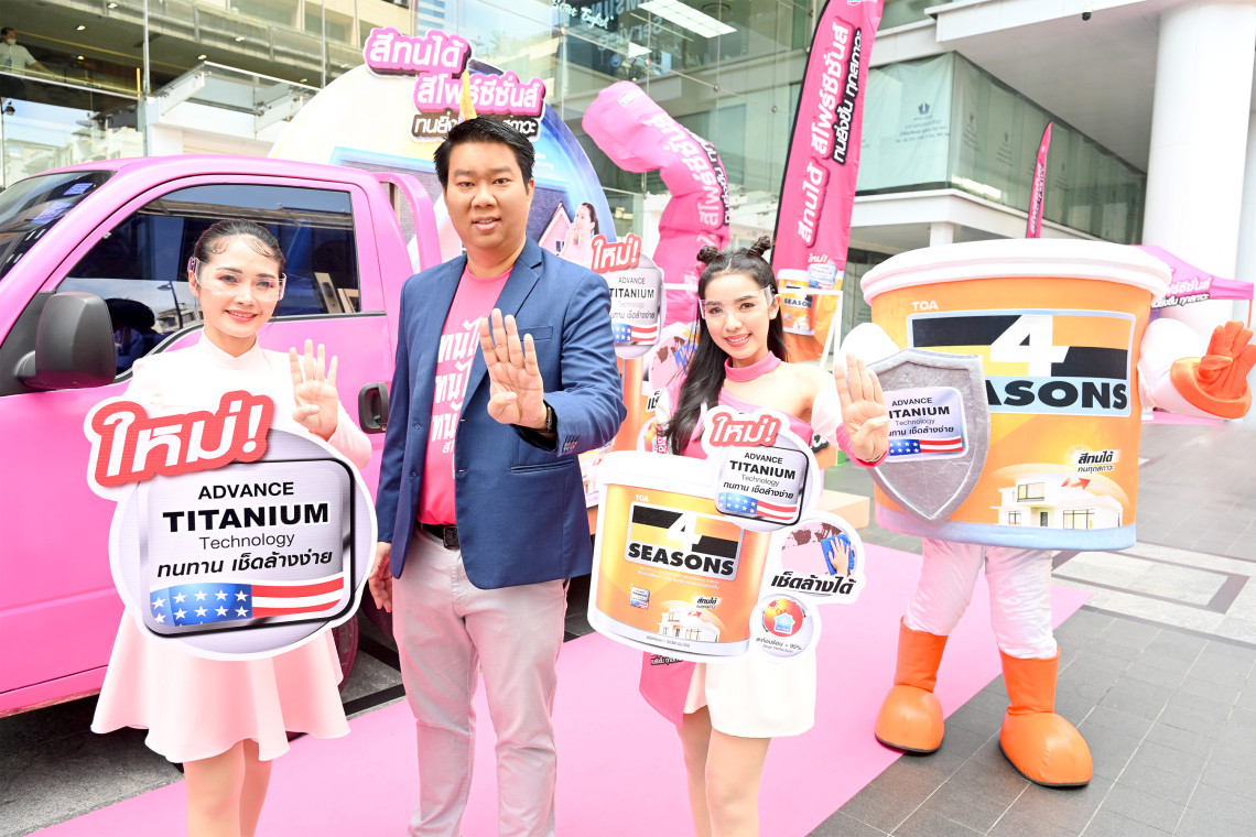 บริษัท ทีโอเอ เพ้นท์ (ประเทศไทย) จำกัด (มหาชน) หรือ TOA ผู้นำตลาดสีทาอาคารและวัสดุก่อสร้างครบวงจรแบบ Total Solution ตอกย้ำการเป็นเจ้าแห่งตลาดสีทาบ้าน เปิดตัวแคมเปญการตลาดรับซัมเมอร์สุดยิ่งใหญ่ กับการกลับมาอีกครั้งของ “สีทนได้ สีโฟร์ซีซั่นส์ สีขวัญใจมหาชน สียอดขายอันดับหนึ่ง” ที่อัพเกรดเวอร์ชั่นความทนทาน มากยิ่งขึ้น ด้วยเทคโนโลยีใหม่ Advance Titanium จากอเมริกา พร้อมจัดเต็มด้วยกองทัพขบวนคาราวานสัญจร ส่งความสุขทั่วทุกภูมิภาคของไทย ที่กรุงเทพฯ เหนือ อีสาน กลาง และใต้