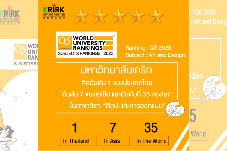มหาวิทยาลัยเกริก ติดอันดับ 1 ของประเทศไทย อันดับ 7 ของเอเชีย และอันดับที่ 35 ของโลก ในสาขาวิชา “ศิลปะและการออกแบบ” จากการจัดอันดับของ QS World University Rankings by Subject 2023