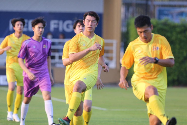ทางด้าน “เก้า นพเก้า” ลูกทีมตัวแทนฝั่งสีม่วง ก็พูดถึงช่วงซ้อมว่า “เหนื่อยกว่าที่คิดครับ เหนื่อยมากไม่ได้เตะบอลแบบนี้มาประมาณ 6-7 ปีได้แล้ว ค่อนข้างเหนื่อยเอาเรื่องเลย วันจริงไม่เป็นห่วงนะครับ เพราะน่าจะได้ลงสนามอยู่แค่ประมาณ 2 นาที(หัวเราะ) อยากให้แฟน ๆ ทุกคนมาดูกันเยอะ ๆ เพราะว่าทุกคนในทีมสีเหลืองทุกคนตั้งใจซ้อมมาก ทุกคนซ้อมเพื่อให้แฟน ๆ ได้มาเอนจอยกัน ก็อยากให้ทุกคนมาเชียร์กันเยอะ ๆ ครับ มันจะเป็นการเพิ่มบรรยากาศ แล้วก็จะทำให้พวกเราเล่นบอลกันสนุกมากขึ้น ผมเชื่ออย่างนั้น”