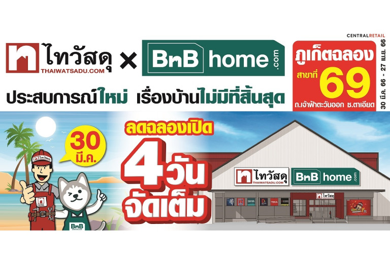 ไทวัสดุ ผู้นำธุรกิจค้าปลีกวัสดุก่อสร้างและสินค้าตกแต่งบ้าน ภายใต้ บริษัท ซีอาร์ซี ไทวัสดุ จำกัด ในเครือเซ็นทรัล รีเทล จัดโปรโมชันฉลองเปิดสาขาใหม่ "ไทวัสดุ x บีเอ็นบี โฮม สาขาภูเก็ต ฉลอง" สาขาใหม่ล่าสุด เพื่อชาวภูเก็ตโดยเฉพาะ ปลุกกำลังซื้อสินค้าวัสดุก่อสร้าง และสินค้าตกแต่งบ้านรับช่วงซัมเมอร์นี้ ด้วยสินค้าราคาพิเศษลดสูงสุดกว่า 60% และซื้อ 1 ฟรี 1 ระหว่างวันที่ 30 มีนาคม – 2 เมษายน 2566 เท่านั้น