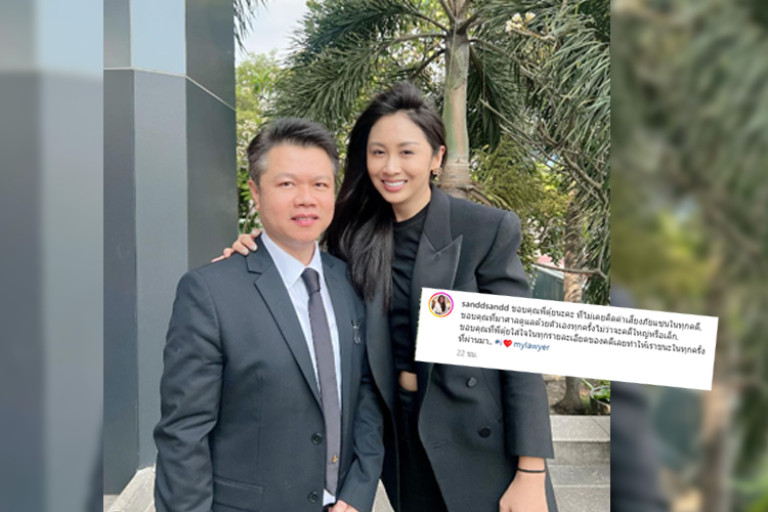 ด้านแซน ได้โพสต์ภาพคู่กับทนายความ ระบุแคปชั่นว่า...“ขอบคุณพี่ตุ๋ยนะคะ ที่ไม่เคยคิดค่าเสี่ยงภัยแซนในทุกคดี, ขอบคุณที่มาศาลดูแลด้วยตัวเองทุกครั้งไม่ว่าจะคดีใหญ่หรือเล็ก, ขอบคุณที่พี่ตุ๋ยใส่ใจในทุกรายละเอียดของคดีเลยทำให้เราชนะในทุกครั้งที่ผ่านมา..”