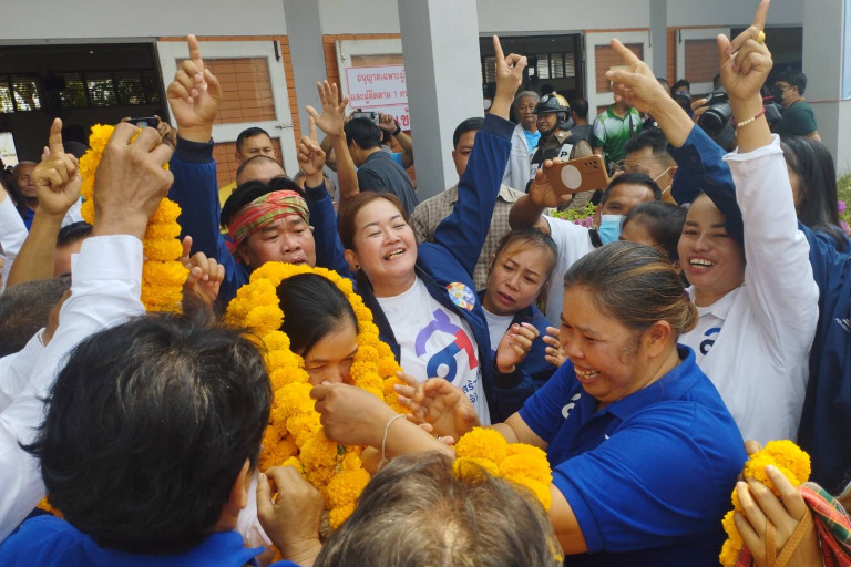วันที่ 3 เม.ษ.66 เวลา 10.00 น.ที่บริเวณลานปูนหน้าหอประชุมอำเภอเมืองยโสธร จังหวัดยโสธร สถานที่รับสมัครส.ส.แบบแบ่งเขตเลือกตั้งของจังหวัดยโสธรบรรดากองเชียร์ของนางสุภาพร สลับศรี(สจ.เตี้ย)อดีตประธานสภา อบจ.ยโสธร ที่เดินทางมารับสมัครส.ส.เขต.1ยโสธร พรรคไทยสร้างไทย เมื่อทราบว่า นางสุภาพรฯจับได้หมายเลข1ต่างส่งเสียงเฮลั่นสนามแสดงความดีใจที่ผู้สมัคร ส.ส.ที่ตนรักและตนมาเชียร์จับได้หมายเลข 1