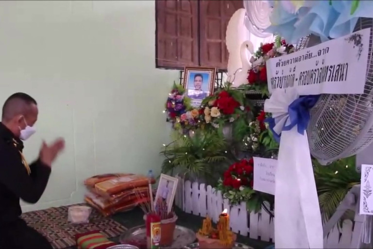 ขณะที่นายบรรดิฐ อายุ 52 ปี พ่อบอกว่า หลังลูกพฤติกรรมเปลี่ยนไป ก็เฝ้าดูตลอด ไม่ค่อยออกไปไหนนาน กลับมาก็เข้ามานอนในห้อง ดูรายการทางยูทูป เกี่ยวกับบุญกรรม เรื่องความเชื่อเรื่องผีสาง ก็ไม่รู้สาเหตุจริงๆ และขอบคุณทางมณฑลทหารบกที่ 24 ที่มาให้การช่วยเหลือและให้กำลังใจ ซึ่งทางญาติได้หาชุดทหารลายพลางมาไว้หน้าโลงศพ น้องณัฐ ตามความต้องการของน้องณัฐที่ตอนมีชีวิตอยู่ที่อยากจะสวมใส่