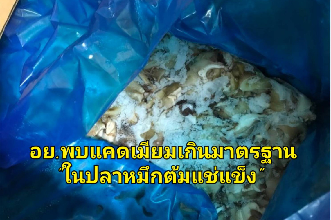 สำนักงานคณะกรรมการอาหารและยา (อย.) ได้สุ่มเก็บตัวอย่างอาหาร ณ ด่านอาหารและยาท่าเรือกรุงเทพ นำเข้าโดยบริษัท วายเอเจ เทรด ทราน จำกัด ส่งตรวจวิเคราะห์โดยมีรายละเอียดผลิตภัณฑ์ ดังนี้ “ผลิตภัณฑ์ปลาหมึกกล้วยต้มหั่นแช่แข็ง (FROZEN COOKED SQUID SLICES (GRADE B))” ผลิตโดย FUJIAN HUAXIAN AQUATIC SEAFOOD CO., LTD สาธารณรัฐประชาชนจีน รุ่นการผลิตที่ 076/2022 วันผลิต 20/10/2022 และวันหมดอายุ 20/10/2024 น้ำหนักสุทธิ 10 กิโลกรัมต่อกล่อง ผลการตรวจวิเคราะห์ทางวิชาการ จากกรมวิทยาศาสตร์การแพทย์พบแคดเมียม 6.30 มิลลิกรัมต่อกิโลกรัม (ต้องไม่เกิน 2 มิลลิกรัมต่อกิโลกรัม) ซึ่งเข้าข่ายเป็นอาหารไม่บริสุทธิ์และอาหารผิดมาตรฐาน ตามพระราชบัญญัติอาหาร พ.ศ. 2522 ผลิตภัณฑ์ดังกล่าวจึงเป็นอาหารที่ไม่ปลอดภัยในการบริโภค และ อย. อยู่ระหว่างดำเนินการตามกฎหมายกับผู้กระทำผิด
