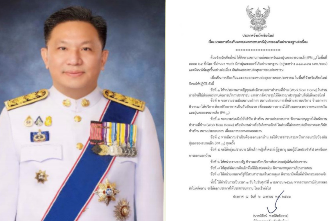 ทั้งนี้ให้ดำเนินการเป็นเวลา 1 วัน คือในวันศุกร์ที่ 7 เมษายน 2566 หากสถานการณ์ฝุ่นละออง ยังไม่คลี่คลายจะได้ออกประกาศให้ประชาชนทราบโดยเร็วต่อไป