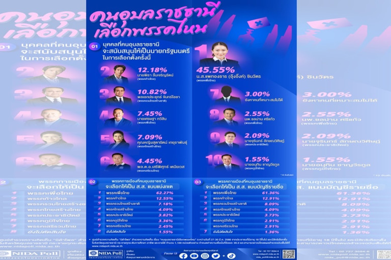 วันที่ 9 เม.ย.66 ศูนย์สำรวจความคิดเห็น “นิด้าโพล” สถาบันบัณฑิตพัฒนบริหารศาสตร์ (นิด้า) เปิดเผยผลสำรวจของประชาชน เรื่อง “คนอุบลราชธานีเลือกพรรคไหน” ทำการสำรวจระหว่างวันที่ 27-30 มีนาคม 2566 จากประชาชนที่มีอายุ 18 ปีขึ้นไป และมีสิทธิเลือกตั้งในจังหวัดอุบลราชธานี กระจายทุกระดับการศึกษา อาชีพ และรายได้ รวมทั้งสิ้น จำนวน 1,100 หน่วยตัวอย่าง เกี่ยวกับคนจังหวัดอุบลราชธานีเลือกพรรคไหน การสำรวจอาศัยการสุ่มตัวอย่างโดยใช้ความน่าจะเป็นจากบัญชีรายชื่อฐานข้อมูลตัวอย่างหลัก (Master Sample) ของ “นิด้าโพล” สุ่มตัวอย่างด้วยวิธีแบบง่าย (Simple Random Sampling) เก็บข้อมูลด้วยวิธีการสัมภาษณ์ทางโทรศัพท์ โดยกำหนดค่าความเชื่อมั่น ร้อยละ 95.0