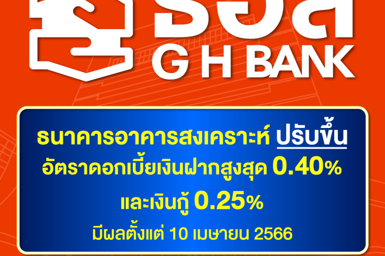 ดังนั้นเพื่อส่งผ่านนโยบายดังกล่าว ธอส. จึงมีมติให้ ปรับขึ้นอัตราดอกเบี้ยเงินฝากออมทรัพย์ และเงินฝากประจำ 0.05-0.40% ต่อปี ขณะเดียวกันธนาคารได้ปรับขึ้นอัตราดอกเบี้ยเงินกู้ทุกประเภท 0.25% ต่อปี โดยมีผลบังคับใช้ตั้งแต่วันที่ 10 เมษายน 2566 เป็นต้นไป