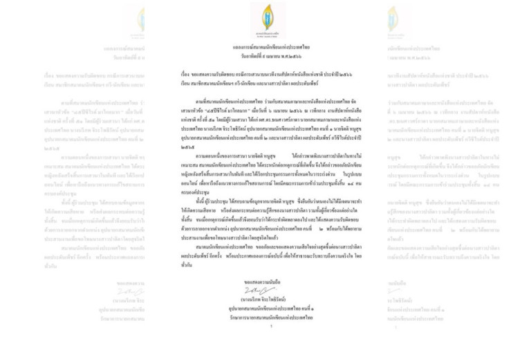 แถลงการณ์สมาคมนักเขียนแห่งประเทศไทย
