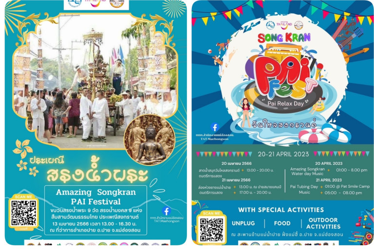 ททท. สำนักงานแม่ฮ่องสอน ขอเชิญชวนทุกท่านร่วมกิจกรรมการท่องเที่ยวประเพณีสงกรานต์ ที่ อ.ปาย จ.แม่ฮ่องสอน เพื่อส่งเสริมการท่องเที่ยว ช่วยกระตุ้นการจับจ่ายใช้สอย และกระจายรายได้สู่ชุมชน รวมทั้งประชาสัมพันธ์เผยแพร่แหล่งท่องและกิจกรรมการท่องเที่ยวต่าง ๆ ของอำเภอปาย ได้แก่