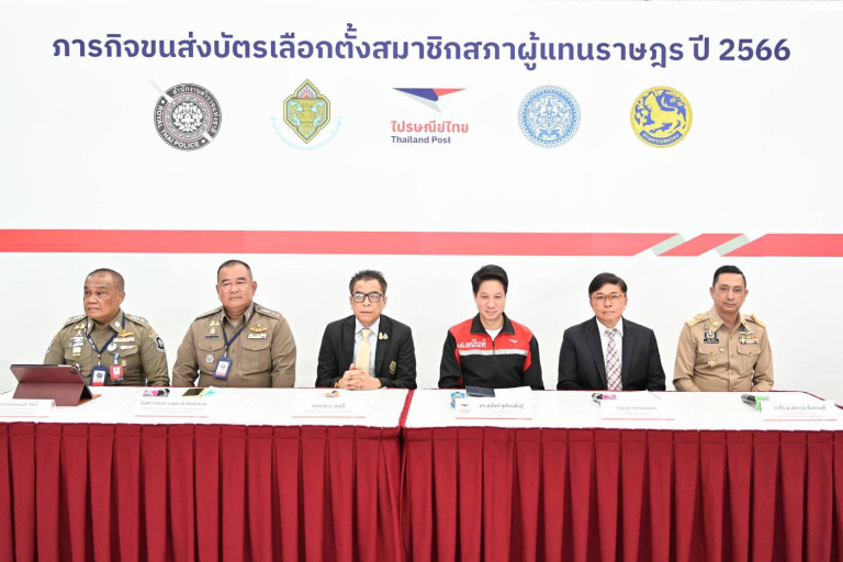 “เดือนเมษายนนี้ไปรษณีย์ไทยจะเริ่มจัดส่งหนังสือแจ้งรายชื่อผู้มีสิทธิเลือกตั้ง (ส.ส.1/6) จำนวนกว่า 52 ล้านรายชื่อ และเอกสารแนะนำตัวผู้สมัครรับเลือกตั้งไปยังประชาชนกว่า 18 ล้านครัวเรือนภายใน 20 วันก่อนเลือกตั้ง พร้อมทั้งการจัดส่งบัตรเลือกตั้งนอกราชอาณาจักรไปยัง 66 ประเทศ 94 เมืองปลายทางผ่านระบบขนส่งทางอากาศยาน ดำเนินการระหว่างวันที่ 14 – 15 เมษายน 2566 มีการขนส่งด้วยระบบภาคพื้นสำหรับการเลือกตั้งล่วงหน้าในประเทศครอบคลุมทั้ง 77 จังหวัด และหลังจากการเลือกตั้งล่วงหน้าแล้วเสร็จ ระหว่างวันที่ 7 – 13 พฤษภาคม 2566 จะเร่งจัดส่งบัตรเลือกตั้งสมาชิกสภาผู้แทนราษฎรนอกเขตเลือกตั้ง/ในเขตเลือกตั้งล่วงหน้าที่ลงคะแนนแล้วไปยัง กกต. โดยระดมเจ้าหน้าที่กว่า 500 คน เพื่อคัดแยกบัตรเลือกตั้งล่วงหน้าที่ลงคะแนนแล้วตลอด 24 ชั่วโมง คาดว่าจะใช้เวลาประมาณ 1 สัปดาห์ และใช้รถยนต์ขนส่งไม่ต่ำกว่า 500 เที่ยว”