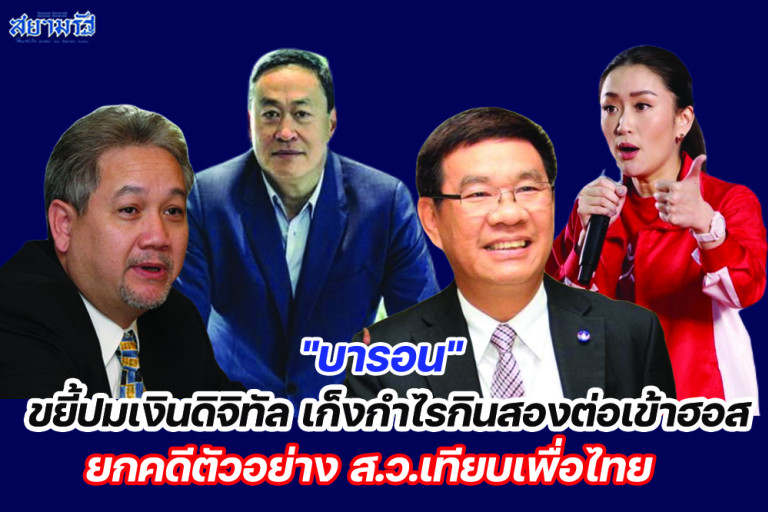 นายเกียรติ สิทธิอมร ทีมเศรษฐกิจพรรคประชาธิปัตย์ อัดได้ตรงเป้า ว่า เชื่อว่านโยบายนี้มีวาระแอบแฝง และ มีผลประโยชน์ทับซ้อน ที่นี่ บารอน เห็นด้วยครับ ค่าเงินดิจิทัลอยู่ในช่วงขาลง หลายสกุลดิจิทัลตกต่ำ คนเก็งกำไรเก็บเงินดิจิทัล และ คนเคยขายคอนโดด้วยเงินดิจิทัล ทำให้ ต้องถือเงินดิจิทัลไว้ในมือ ภาษาเซียนหุ้นเรียกว่า ติดดอย รอคอยเวลาปล่อย เงินห้าแสนห้าหมื่นล้านบาทเทลงไปตลาดเงินดิจิทัล สกุลใด เงินดิจิทัลสกุลนั้นราคาพุ่งทะลุเพดานดอยแน่นอน…*…