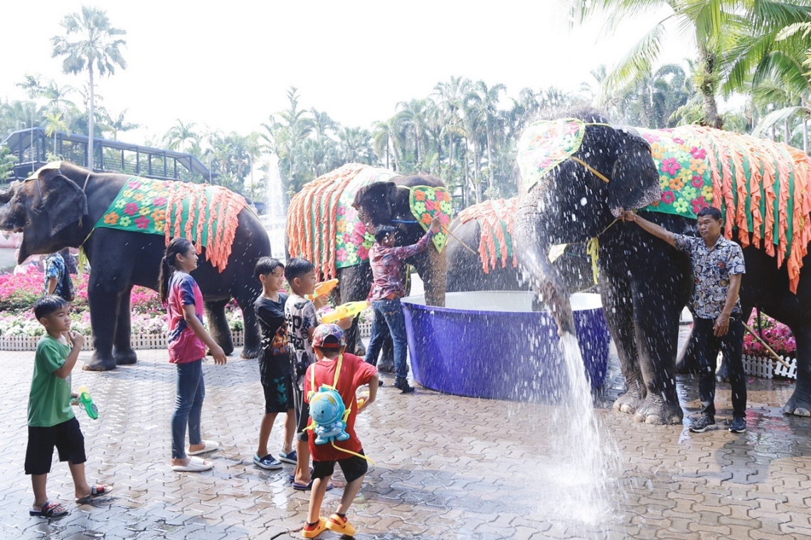 โดยภายในงานมีขบวนแห่นางสงกรานต์ที่สวยงามตระการตาในชื่อชุด " เถลิงศก มหาสงกรานต์ เย็นสำราญ สวนนงนุช" ร่วมสรงน้ำพระพุทธรูป 9 วัด คู่บ้านคู่เมืองของไทย พร้อมกับชมลูกช้างรดน้ำดำหัวแม่ช้างจำนวน 3 คู่ มอบพวงมาลัย ขอพรจากแม่ช้างพร้อมปะแป้ง เป็นสัญลักษณ์ในการแสดงความเคารพ สร้างความประทับใจแก่นักท่องเที่ยว ซึ่งเป็นการเผยแพร่ประเพณีอันดีงามของประเทศไทยให้ประจักษ์สู่สายตานักท่องเที่ยวทั่วโลก นอกจากนี้ช้างแสนรู้ ได้ร่วมกันเล่นน้ำสงกรานต์ กับนักท่องเที่ยว ที่เข้ามาท่องเที่ยวภายในสวนนงนุชอีกด้วย