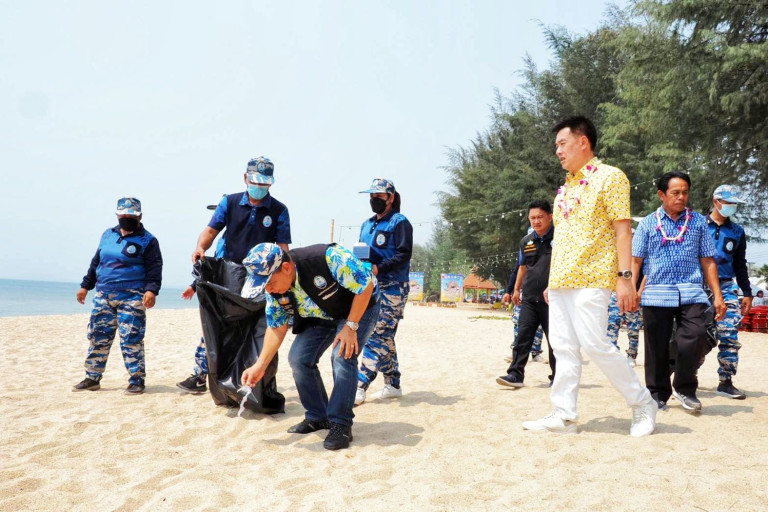 เมื่อวันที่ 13 เม.ย.66 นายอภิชัย เอกวนากุล รองอธิบดีกรมทรัพยากรทางทะเลและชายฝั่ง รักษาราชการแทนอธิบดีกรมทรัพยากรทางทะเลและชายฝั่ง (รรท.อทช.) พร้อมด้วยนายพงษ์พันธุ์ กิจไพบูลย์ ผู้อำนวยการส่วนพัสดุ และนางสาวระพีพรรณ ชุ่มจันทร์ ผู้อำนวยการส่วนอำนวยการและประสานราชการ กรมทรัพยากรทางทะเลและชายฝั่ง ลงพื้นที่เพื่อตรวจเยี่ยมศูนย์อำนวยความสะดวกและรักษาความปลอดภัยแก่นักท่องเที่ยวในช่วงเทศกาลสงกรานต์ ที่ชายหาดบ้านกรูด อ.บางสะพาน จ.ประจวบคีรีขันธ์ โดยมี นายอิศรา กาญจนรัตน์ นายกเทศมนตรีตำบลบ้านกรูด นางสมหญิง พ่วงประสาน ผู้อำนวยการส่วนบริหารทั่วไป นางสาวฟองแก้ว พูลสวัสดิ์ ผู้อำนวยการศูนย์อนุรักษ์ทรัพยากรทางทะเลจังหวัดประจวบคีรีขันธ์ สำนักงานทรัพยากรทางทะเลและชายฝั่งที่ 3 เจ้าหน้าที่ อปพร. ตำรวจภูธร สภ.บ้านกรูด เจ้าหน้าที่เทศบาลตำบลบ้านกรูด อาสาสมัครพิทักษ์ทะเล พร้อมเจ้าหน้าที่ในสังกัดสำนักงานทรัพยากรทางทะเลและชายฝั่งที่ 3 เข้าร่วมให้การต้อนรับและนำตรวจเยี่ยม พร้อมกันนี้ นายอภิชัย และคณะได้เข้าร่วมกิจกรรมงานสืบสานประเพณีสงกรานต์บ้านกรูด และร่วมเก็บขยะริมชายหาด รณรงค์ลดละเลิกวัสดุพลาสติกให้แก่นักท่องเที่ยวที่มาใช้บริการกันเป็นจำนวนมาก