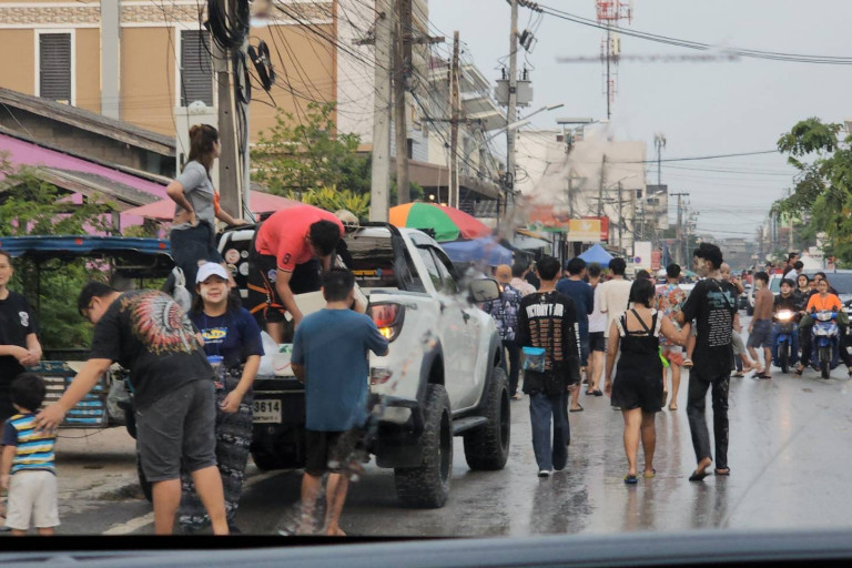 เมื่อเวลา 13.00 น.วันที่ 13 เม.ย.ผู้สื่อข่าวรายงานว่า การเล่นสาดน้ำสงกรานต์ระยอง ตลอดถนนสายล่าง หรือถนนราษฏร์บำรุง อ.เมือง จ.ระยอง มีประชาชนเล่นมาสาดน้ำสงกรานต์อย่างคึกคัก หลังมีการอั้นเนื่องจากติดสถานการณ์โควิด-19 ไม่ได้จัดมา ประมาณ 2-3 ปี ส่งผลให้รถติดยาวเหยียดหลายกิโลเมตรตลอดสาย นักท่องเที่ยวต้องลงจากรถยนต์ เดินเล่นสาดน้ำแทน