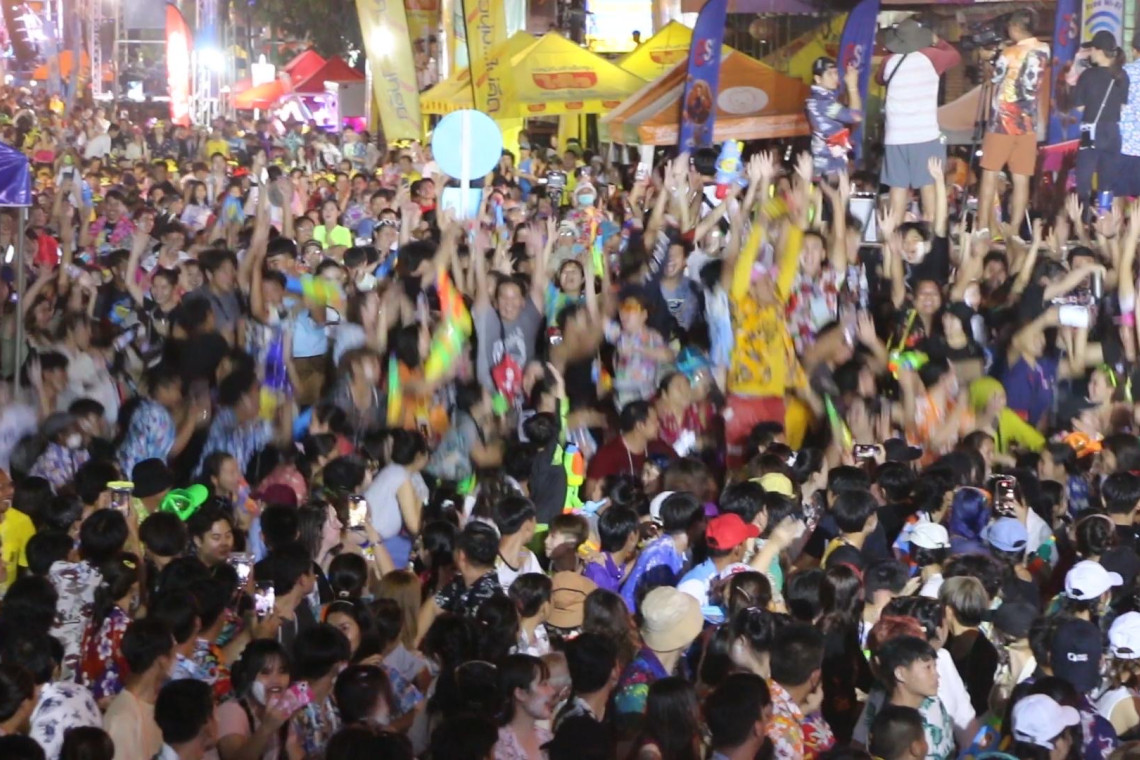 เมื่อเวลา 18.30 น. วันที่ 13 เม.ย.2566 ที่บริเวณเวทีกลาง ถนนข้าวเหนียว นายไกรสร กองฉลาด ผวจ.ขอนแก่น พร้อมด้วย พล.ต.ต.นพเก้า โสมนัส ผบก.ภ.จว.ขอนแก่น และนายธีระศักดิ์ ฑีฆายุพันธ์ นายกเทศมนตรีนครขอนแก่น ร่วมนำชาวขอนแก่นและนักท่องเที่ยวชาวไทยและชาวต่างชาติ เกือบ 100,000 คนร่วมบันทึกแห่งความประทับใจในท่าโอเคขอนแก่น ซึ่งแสดงถึงสัญลักษณ์