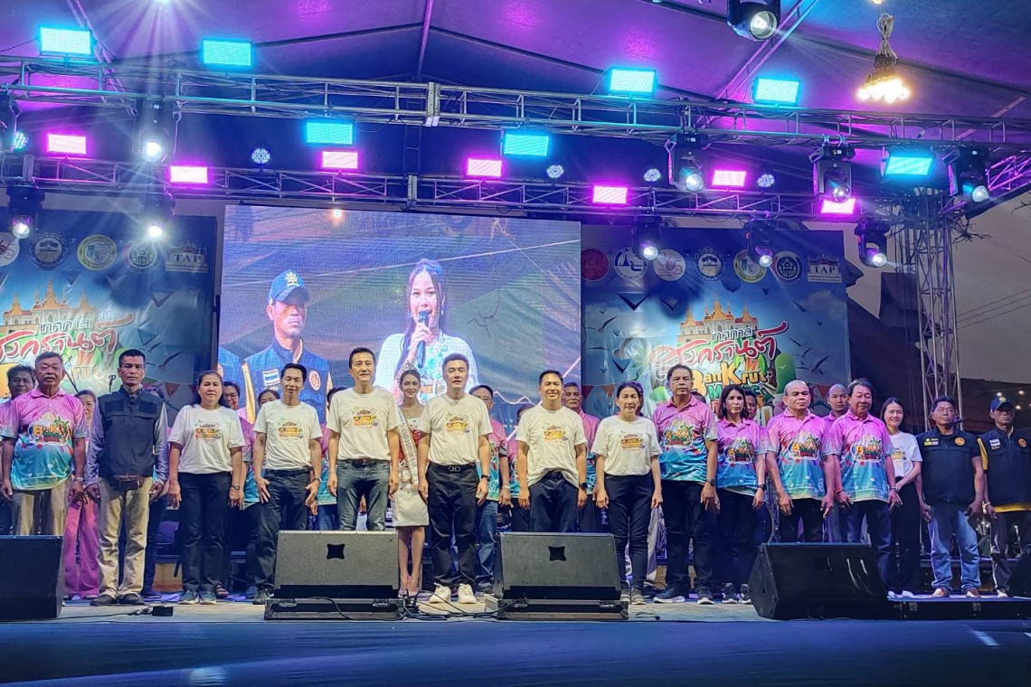 เมื่อช่วงค่ำวันที่ 14 เม.ย. 66 ที่ศูนย์การท่องเที่ยวเทศบาลตำบลบ้านกรูด อำเภอบางสะพาน จังหวัดประจวบคีรีขันธ์ นายอิศรา กาญจนรัตน์ นายกเทศมนตรีเทศบาลตำบลบ้านกรูด นายสราวุธ ลิ้มอรุณรักษ์ นายกองค์การบริหารส่วนจังหวัดประจวบคีรีขันธ์ นายอาชวันต์ กงกะนันทน์ ผอ.ททท.สำนักงานประจวบคีรีขันธ์ นายนายอุดมสุข นิ่มเซียน นายกสมาคมธุรกิจการท่องเที่ยว จ.ประจวบคีรีขันธ์ น.ส.แสงจันทร์ แก้วประทุมรัสมี ท่องเที่ยวและกีฬาจังหวัดประจวบคีรีขันธ์ นายสมหมาย ปานทอง อุปนายกสมาคม กำนันผู้ใหญ่บ้านแห่งประเทศไทย พร้อมคณะผู้บริหาร สมาชิกสภาเทศบาลบ้านกรูด ผู้บริหารท้องถิ่น กำนัน ผู้ใหญ่บ้าน และแขกผู้มีเกียรติ ร่วมเปิดงาน “เทศกาลสงกรานต์ มิวสิคเฟสติวัล บ้านกรูด ฟีลกู๊ด 2023” ที่จัดขึ้นระหว่างวันที่ 13 - 17 เมษายน 2566 ที่บริเวณชายหาดบ้านกรูด แหล่งท่องเที่ยวชื่อดังของ อ.บางสะพาน