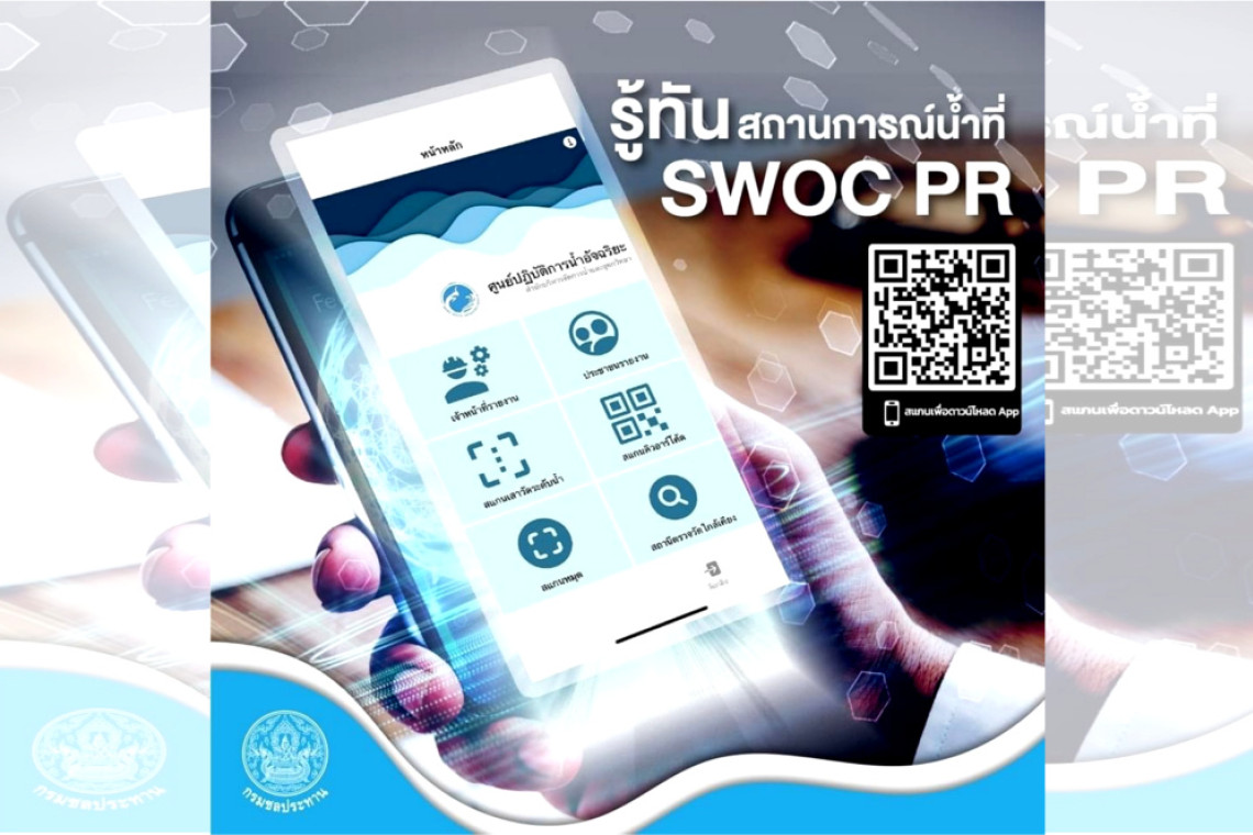 แอปพลิเคชัน SWOC PR (Smart Water Operation Center) รายงานสถานการณ์น้ำแบบมีส่วนร่วม จากความร่วมมือระหว่างกรมชลประทาน และภาควิชาวิศวกรรมชลประทาน คณะวิศวกรรมศาสตร์ กำแพงแสน มหาวิทยาลัยเกษตรศาสตร์ ในการวิจัย ออกแบบ พัฒนา และทดสอบ นวัตกรรมระบบตรวจวัดระดับน้ำโดยใช้ QR Code ผ่านแอปพลิเคชันบนโทรศัพท์เคลื่อนที่ ให้ประชาชนได้ร่วมกับเจ้าหน้าที่กรมชลประทานรายงานสถานการณ์น้ำ จากเสาวัดระดับน้ำ SWOC CODE ที่ถูกติดตั้งนำร่องในลำน้ำต่าง ๆ กว่า 42 จุดทั่วประเทศ เพื่อให้ประชาชนติดตามสถานการณ์น้ำในลําน้ำต่าง ๆ แสดงผลรายงานแบบเรียลไทม์ที่ทุกคนสามารถเข้าดูได้ทุกที่ ทุกเวลา!