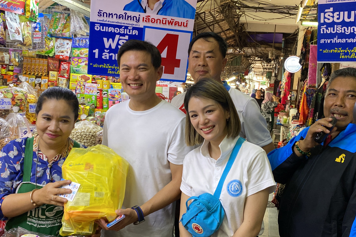 วันที่ 16 เม.ย.66 เวลา 14.30 น.ผู้สื่อข่าวรายงาน ว่า ที่ตลาดกิมหยงและตลาดสันติสุข อ.หาดใหญ่ ศ.ดร.สุชัชวีร์ สุวรรณสวัสดิ์ (ดร.เอ๋) นางสาววทันยา บุนนาค (มาดามเดียร์) ช่วยหาเสียงให้นายพิพัฒน์ อุดมอักษร ผู้สมัคร ส.ส.เขต 2 เบอร์ 4 สงขลา พรรคประชาธิปัตย์ มีประชาชนให้การต้อนรับด้วยการชูป้ายให้กำลังใจและขอถ่ายรูปเป็นจำนวนมาก