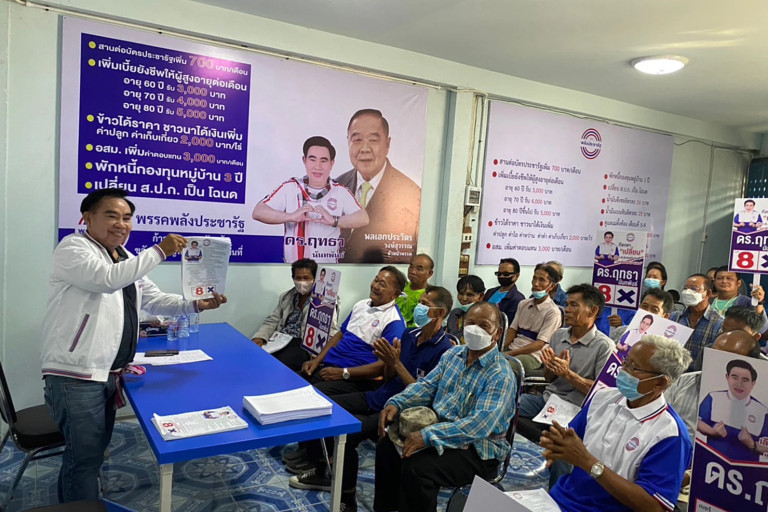 ด้าน นายธีรวัฒน์ คำศรี ผู้สมัคร ส.ส.ศรีสะเกษ เขต 3 หมายเลข 1 พรรคประชาธิปัตย์ ออกหาเสียงชี้แจงนโยบายของพรรคประชาธิปัตย์คือการสร้างเงินสร้างคนสร้างชาติ นโยบายที่ 1 การประกันรายได้ จ่ายเงินส่วนต่าง ข้าว มัน ยาง ปาล์ม และข้าวโพด นโยบายที่ 2 เป็นนโยบายสำหรับพี่น้องเกษตรกรที่ปลูกข้าว นโยบายที่ 3 ฟรีนมโรงเรียน 365 วัน การให้เกษตรกรที่เลี้ยงโคนมนั้นสามารถจำหน่ายผลิตภัณฑ์โคนมให้กับเด็กไทย นโยบายที่ 4 การให้เงินอุดหนุนกลุ่มเกษตรกรประมงกลุ่มละ 100,000 บาทต่อปี ทุกกลุ่ม ทั้ง 2,800 กว่ากลุ่ม นโยบายที่ 5 ประมงพาณิชย์ จะปลดล็อกประมงพาณิชย์ มีการยื่นในการแก้ไขกฎหมายที่เป็นธรรม นโยบายที่ 6 ออกโฉนดที่ดิน 1 ล้านแปลง ภายใน 4 ปี ซึ่งจะเป็นการแก้ปัญหาของพี่น้องที่ไม่มีที่ดินทำกิน นโยบายที่ 7 นโยบายออกกรรมสิทธิ์ที่ดินทำกินให้กับพี่น้องเกษตรกรที่อยู่ในที่ดินต่าง ๆ และนโยบายที่ 8 ธนาคารหมู่บ้านและชุมชน แห่งละ 2 ล้านบาททั้งประเทศ รวมทั้งในกรุงเทพมหานครทุกชุมชน