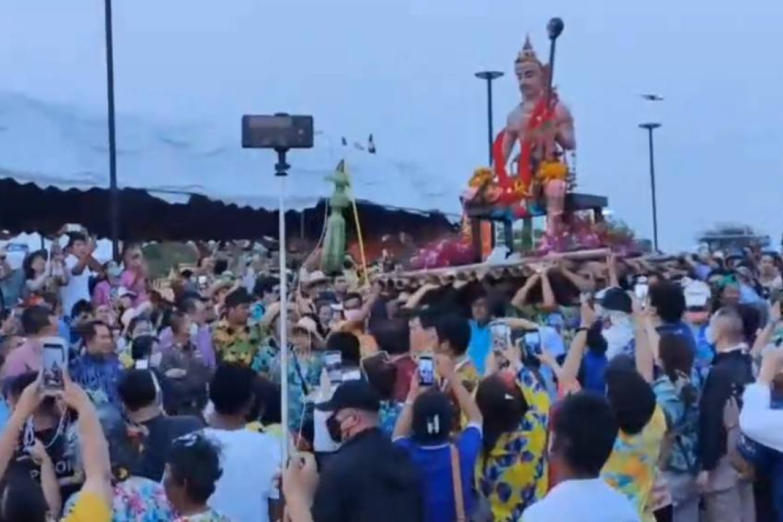วันที่ 18 เม.ย.66 ผู้สื่อข่าวรายงาน ว่า ที่ บริเวณสวนเฉลิมพระเกียรติ ร.9 ชายทะเลบางพระ เทศบาลตำบลบางพระ อำเภอศรีราชา จังหวัดชลบุรี นายสุชาติ ชมกลิ่น รัฐมนตรีว่าการกระทรวงแรงงาน เป็นประธานในพิธีบวงสรวงองค์พญายม ในงานประเพณีแห่ “องค์พญายม” บางพระหนึ่งเดียวในโลกและวันไหลบางพระ ที่จัดขึ้นโดยเทศบาลตำบลบางพระเป็นประจำทุกปี โดยมี นายสมศักดิ์ เกตุวัตถา นายกองค์การบริหารส่วนตำบลบางพระ สมาชิกสภาเทศบาล ผู้นำชุมชน กำนัน ผู้ใหญ่บ้าน และประชาชนชาวบางพระเข้าร่วมงานเป็นจำนวนมาก ในปีนี้องค์พญายม เป็นภาคเทวดาหน้าตาใจดี นั่งห้อยขาข้างเดียว มือขวาถือบ่วงจับวิญญาณ มือซ้ายถือไม้เท้าหัวกะโหลก โดยริ้วขบวนแห่องค์พญายมออกจากบริเวณศูนย์เยาวชนบางพระ ไปรอบตลาดบางพระก่อนนำไปลอยทะเล เพื่อปล่อยสิ่งชั่วร้าย ซึ่งในขบวนแห่นั้นมีชุมชนและหน่วยงานเอกชน ต่างส่งรถแห่ที่ตกแต่งอย่างสวยงาม เข้าร่วมขบวนแห่ในครั้งนี้ จำนวน 32 ขบวน