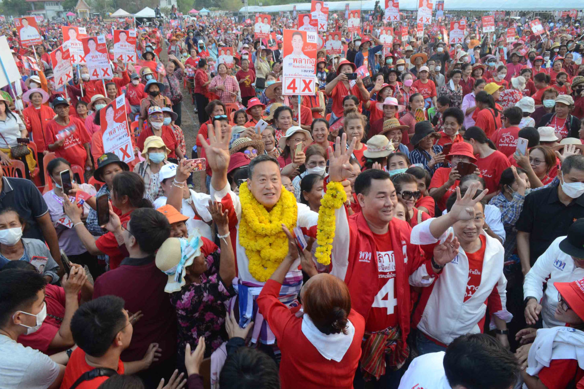 เพื่อไทยยกทัพนำขุนพลเปิดเวทีปราศรัยหาเสียงช่วย “บอล” พลากร พิมพะนิตย์ ผู้สมัคร ส.ส.กาฬสินธุ์ เขต 2 ตอกเสาเข็มกาฬสินธุ์ต้องแลนด์สไลด์ทั้ง 6 เขต ด้าน“อุ๊งอิ๊ง”วีดีโอคอลอ้อนคิดถึงชาวกาฬสินธุ์ขออย่าปันใจ ย้ำพรรคเพื่อไทยไม่มีสาขา ให้เลือกทั้งคน ทั้งพรรคแลนด์สไลด์ทั่วประเทศ ขณะที่ “เศรษฐา”เดินประกาศเดินหน้านโยบายกระเป๋าตังค์ดิจิทัลให้คนละ 10,000 บาท ยืนยันไม่ยกเลิกบัตรคนจน ระบุพรรคเพื่อไทยเป็นรัฐบาลคนจนจะหมดไป