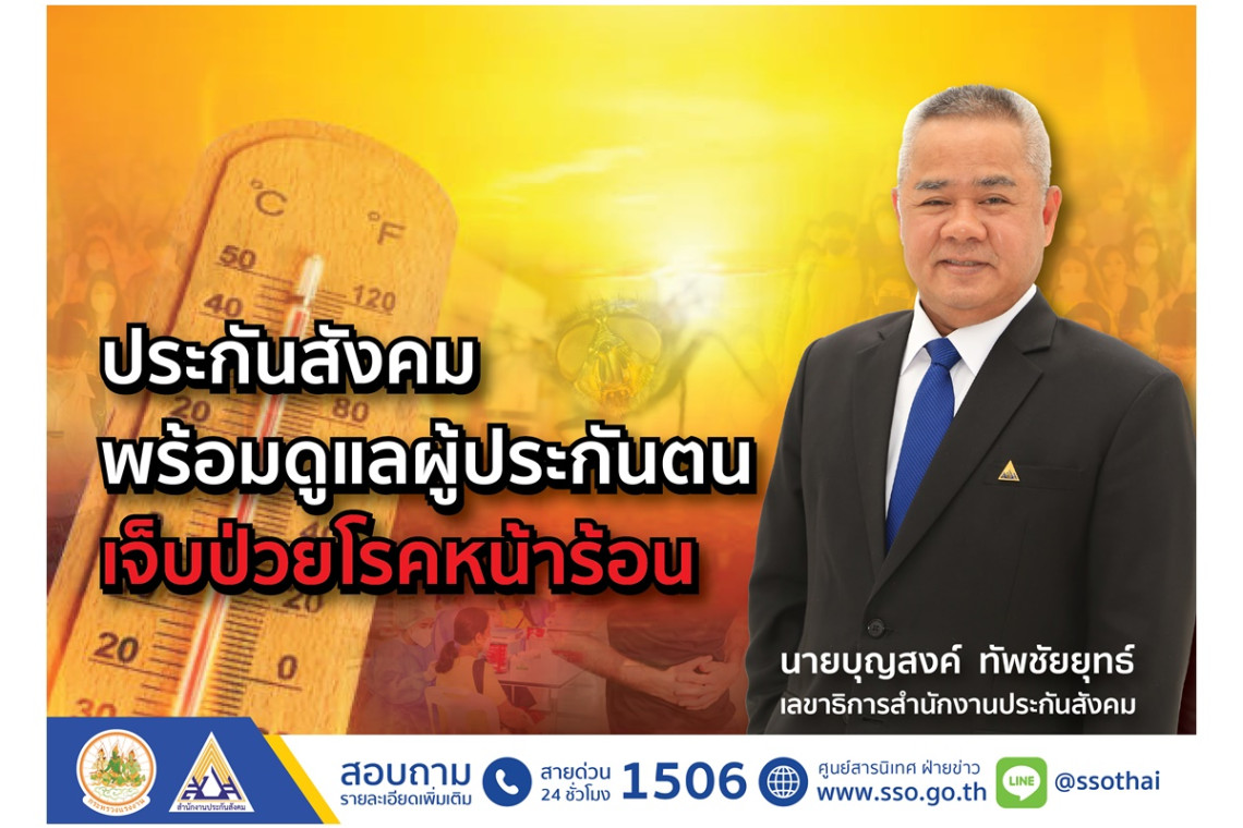 ประกันสังคมพร้อมดูแลผู้ประกันตนเจ็บป่วยโรคหน้าร้อน โดยไม่เสียค่าใช้จ่าย