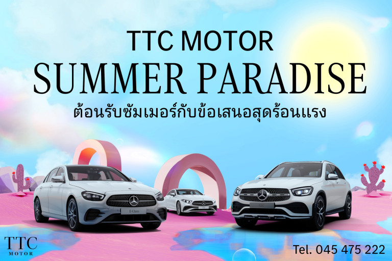 TTC Motor ยังคงอัดแคมเปญรับอุณหภูมิร้อนแรงของอากาศ และความต้องการของผู้บริโภค กับแคมเปญ SUMMERPARADISE ที่มอบข้อเสนอพิเศษ MBSP Extra Guarantee นานสูงสุด 8 ปี ดอกเบี้ย 0% นานสูงสุด 4 ปี พร้อมประกันภัยชั้นหนึ่งนานสูงสุด 1 ปี MBSP Extra Guarantee นานสูงสุด 5 ปี พร้อม MB Protection นานสูงสุด 2 ปี ที่ TTC Motor ครบจบทุกเรื่องเบนซ์ ตั้งแต่วันนี้-30 เมษายน 2566 เงื่อนไขเฉพาะรุ่นที่ร่วมรายการ