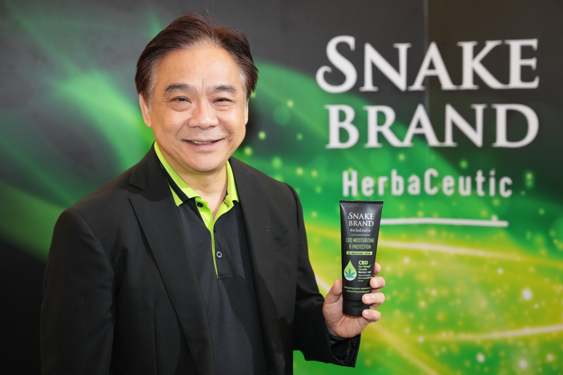 คุณอนุรุธ ว่องวานิช ประธานกรรมการบริหาร กลุ่มบริษัทอังกฤษตรางู กล่าวว่า “เมื่อต้นปีที่ผ่านมากลุ่มบริษัทอังกฤษตรางู ได้เปิดตัวกลุ่มผลิตภัณฑ์ สเนคแบรนด์ เฮอร์บาซูติค ซีบีดี คาล์มมิ่ง โลชั่น 3 กลิ่น และสเนคแบรนด์เฮอร์บาซูติค ซีบีดี มอยส์เจอไรซิ่ง แอนด์ โพรเทคชั่น ยูวี ไบรท์เทนนิ่ง บอดี้เซรั่ม ซึ่งเป็นครั้งแรกของการขยายไลน์โพรดัคส์ ลุยตลาดพรีเมียม CBD ด้วยการผนึกกำลังกับพันธมิตรอย่าง ซาลัส ไบโอซูติคอล ผู้นำธุรกิจสารสกัด CBD ในไทยและเอเชียตะวันออกเฉียงใต้ ตอกย้ำการเป็นผู้นำในตลาดความงามที่ยืนหนึ่งเรื่องความเย็นและกลิ่นที่เป็นเอกลักษณ์เฉพาะตามแบบฉบับอังกฤษตรางู ซึ่งได้รับผลตอบรับที่ดีมากทั้งในเรื่องคุณภาพของผลิตภัณฑ์และกลิ่นหอมที่ถูกใจลูกค้า สำหรับกลุ่มผลิตภัณฑ์ใหม่ ‘สเนคแบรนด์ เฮอร์บาซูติค’ (Snake Brand HerbaCeutic) ถือเป็นการวิจัยและพัฒนาสินค้า โดยคัดสรรส่วนผสมเกรดพรีเมี่ยม จากสารสกัดสมุนไพรธรรมชาติมาตรฐานเกรดทางการแพทย์ พร้อมด้วยนวัตกรรมและเทคโนโลยีใหม่ในการวิจัยและพัฒนาผลิตภัณฑ์ โดยผ่านการทดสอบการไม่ระคายเคืองผิวจากสถาบันผู้เชี่ยวชาญด้านผิวหนัง เพื่อดูแลและบำรุงผิวกายให้มีสุขภาพดี”