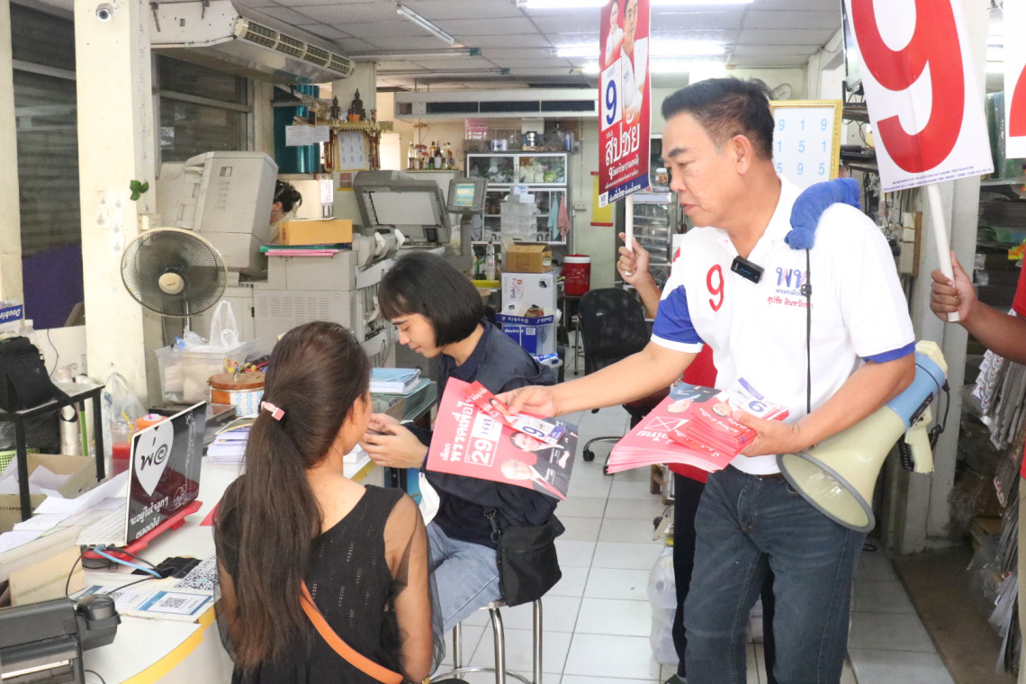 วันที่ 21 เมษายน 2566 เวลา 15.00 น.ผู้สื่อข่าวรายงาน ว่า ที่จุดผ่อนผันซึ่งเป็นพื้นที่จำหน่ายสินค้าอุปโภค บริโภคริมถนนสุรนารายณ์ หน้ามหาวิทยาลัยราชภัฏนครราชสีมา ร.ต.อ.สุปชัย อินทรักษา ผู้สมัคร ส.ส.เขต 1 พื้นที่ ต.ในเมือง ต.หนองไผ่ล้อม และ ต.โพธิ์กลาง อ.เมือง พรรคเพื่อไทย (พท.) เบอร์ 9 พร้อมผู้สนับสนุนเดินประชาสัมพันธ์แนะนำตัวกับผู้ประกอบค้าทั้งหาบเร่แผงลอยและอาคารพาณิชย์รวมทั้งพี่น้องประชาชน ส่วนหนึ่งเป็นบุคลากรทางการศึกษาและนักศึกษามาจับจ่ายซื้อสินค้าอุปโภค บริโภค ชูขอให้ช่วยเปลี่ยนแปลงประเทศ เลือกเพื่อไทยเพื่อพลิกฟื้นเศรษฐกิจแก้ปัญหาปากท้อง