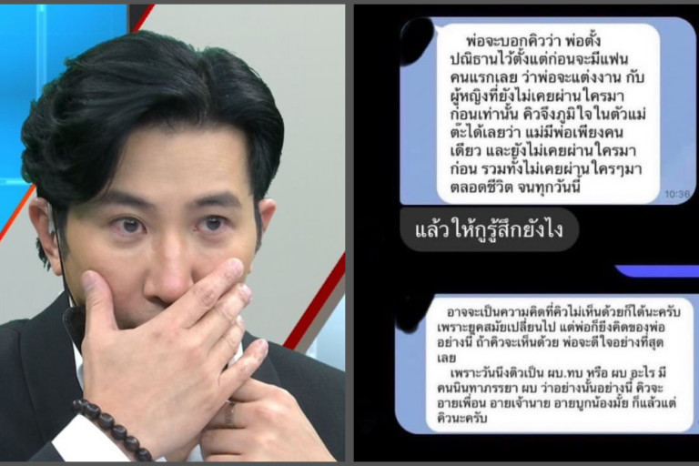 อาจจะเป็นความคิดที่คิวไม่เห็นด้วยก็ได้ครับ เพราะยุคสมัยเปลี่ยนไป แต่พ่อก็ยังคิดของพ่ออย่างนี้ ถ้าคิวจะเห็นด้วย พ่อจะดีใจอย่างที่สุดเลย เพราะวันหนึ่งคิวเป็น ผบ.ทบ. หรือ ผบ.อะไร มีคนนินทาภรรยา ผบ. ว่า อย่างนั้นอย่างนี้ คิวจะอายเพื่อน อายเจ้านาย อายลูกน้อยมั้ย ก็แล้วแต่คิวนะครับ” พร้อมตั้งข้อสงสัยว่า แชทดังกล่าวใช่แชทจริงหรือแชทปลอมกันแน่