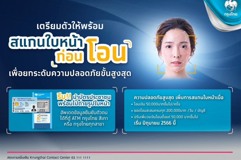 ทั้งนี้การยืนยันตัวตนด้วยใบหน้าก่อนโอนเงิน เริ่มในเดือนมิถุนายน 2566 สำหรับลูกค้าที่ยังไม่เคยมีข้อมูลการยืนยันตัวตนด้วยใบหน้า หรือข้อมูลไม่อัพเดต สามารถเพิ่มข้อมูลได้ เพียงนำบัตรประชาชนไปขอดำเนินการผ่านธนาคารกรุงไทยทุกสาขา และ ตู้ ATM ที่มีสัญลักษณ์ Confirm ID (ตู้สีเทา) โดยอัพเดตข้อมูลครั้งเดียวใช้ได้ทั้ง แอปฯ Krungthai NEXT และเป๋าตัง สอบถามข้อมูลเพิ่มเติมได้ที่ Krungthai Contact Center 02-111-1111