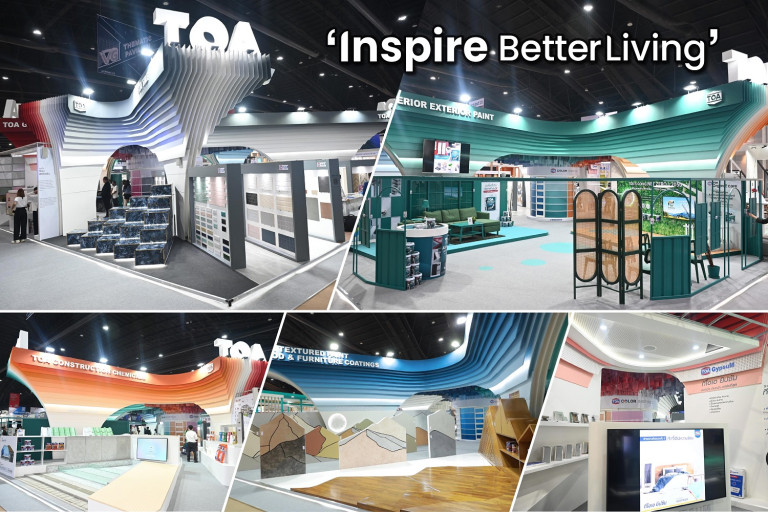 สำหรับพื้นที่ภายในงานของบูธ TOA จะแบ่งเป็น 3 ส่วนสำคัญ ภายใต้แนวคิด ‘Inspire Better Living’ นวัตกรรมสีและวัสดุก่อสร้าง เพื่อที่อยู่อาศัยของคุณและสิ่งแวดล้อมที่ดียิ่งขึ้น โดยส่วนแรกจะโชว์ไฮไลท์นวัตกรรมผลิตภัณฑ์แบบครบวงจร (Total Solution) ประกอบด้วย 1.ผลิตภัณฑ์กลุ่ม Interior & Exterior Paint พบกับสินค้ากลุ่มนวัตกรรมสีเขียว อาทิ TOA AQUA SHIELD,TOA ORGANIC CARE มาพร้อมกับเครื่องหมายใหม่ TOA Green Certified สัญลักษณ์การันตีความปลอดภัยเพื่อคุณและสิ่งแวดล้อม ผ่านการรับรองจากมาตรฐานระดับโลก