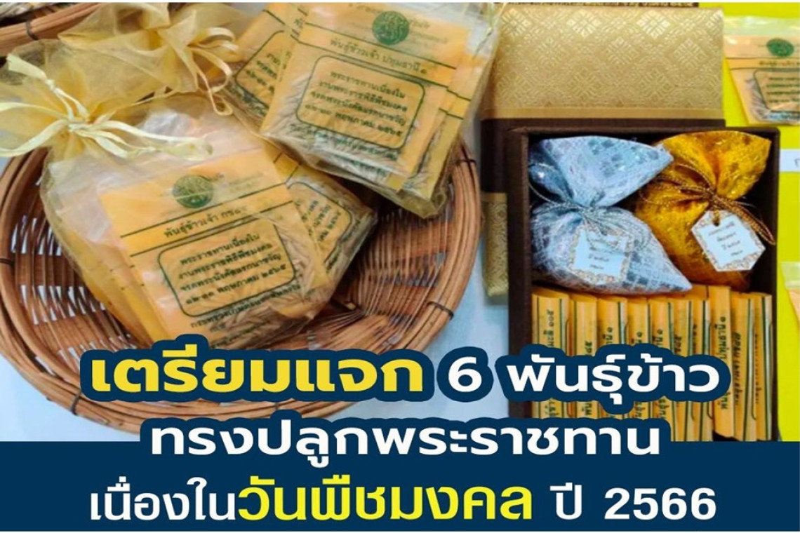 เนื่องในวันพระราชพิธีพืชมงคลจรดพระนังคัลแรกนาขวัญปีนี้ กรมการข้าว ขอพระราชทานพระบรมราชานุญาต จากพระบาทสมเด็จพระเจ้าอยู่หัว นำเมล็ดพันธุ์ข้าวทรงปลูกพระราชทานทั้งหมด 6 พันธุ์ จำนวน 2,244 กิโลกรัม นำเข้าพระราชพิธีพืชมงคลจรดพระนังคัลแรกนาขวัญ ที่จะจัดขึ้นในวันที่ 16 - 17 พ.ค. 66 และนำไปบรรจุซองพลาสติก จำนวน 400,000 ซอง เพื่อแจกจ่ายให้ผู้สนใจและชาวนาทั่วประเทศ รับไปเป็นมิ่งขวัญและสิริมงคล ประกอบด้วย