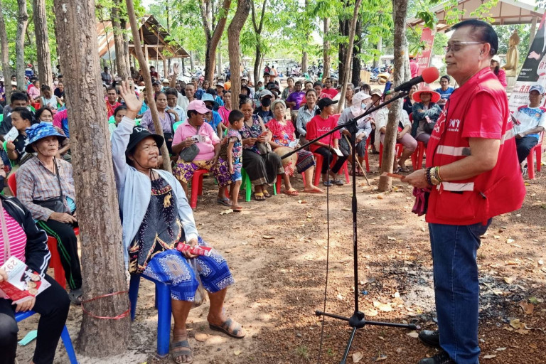 ส่วนนโยบายที่กำลังดัง คือเงินดิจิทัล 10,000 บาท เพื่อกระตุ้นเศรษฐกิจ อายุ 16 ปี ขึ้นไปมีบัตร ปชช.จะได้รับทุกคน แต่ต้องได้เป็นรัฐบาลเท่านั้นจึงจะทำได้ และหากพรรคเพื่อไทยเป็นรัฐบาล มีนายกรัฐมนตรีที่ชื่ออุ๊งอิ๊ง แพทองธาร ชิณวัตร หรือ เศรษฐา ทวีสิน แล้วยังไม่ได้เงิน 10,000 บาท ตนจะพาชาวบ้านบุกทวงถามที่พรรคเพื่อไทย ดังนั้นต้องเลือกแบบแลนด์สไลด์ทั้งคนและพรรค คนเลือกเบอร์ 1 พรรคเพื่อไทย เบอร์ 29 พรรคเพื่อไทย ไว้ใจมหานิยม