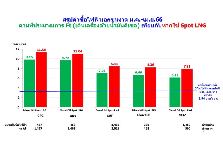 โดยการซื้อไฟฟ้าจากโรงไฟฟ้าเอกชนในราคา 6.11-9.85 บาท/หน่วย เป็นการผลิตไฟฟ้าด้วยน้ำมันดีเซล ซึ่งมีราคาถูกกว่าการผลิตไฟฟ้าด้วย Spot LNG ที่ราคา 7.91 – 11.36 บาท/หน่วย ดังนั้นคณะอนุกรรมการบริหารจัดการรองรับสถานการณ์ฉุกเฉินด้านพลังงาน จึงได้พิจารณาให้เดินเครื่องโรงไฟฟ้าด้วยน้ำมันดีเซล แทนการผลิตไฟฟ้าจากเชื้อเพลิงนำเข้า Spot LNG ทั้งนี้ในช่วงที่มีสถานการณ์พลังงานปกติ อ้างอิงจากค่าไฟฟ้างวดเดือน ม.ค.-เม.ย.64 ค่าซื้อไฟฟ้าเฉลี่ยจาก 5 โรงไฟฟ้านี้จะเท่ากับ 2.94 บาท/หน่วยเท่านั้น