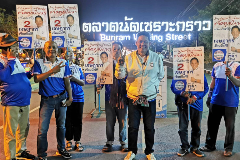 “เจษฎากร เขียนนิลศิริ” หรือ รองปุย ผู้สมัคร ส.ส.บุรีรัมย์ เขต 1 เบอร์ 2 พรรคพลังประชารัฐ ลงพื้นที่หาเสียง ถนนคนเดินเซราะกราว บังเอิญพบผู้สมัครพรรคก้าวไกล เปรย เราจะก้าวข้ามความขัดแย้ง ซึ่งได้รับความสนใจจากพ่อค้า แม้ค้า และประชาชนจับจ่ายซื้อสินค้าเป็นอย่างมาก