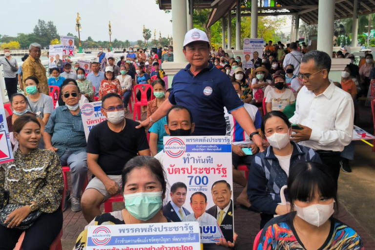 เมื่อเวลา 16.00 น. วันที่ 29 เมษายน ที่ศาลาเฉลิมพระเกียรติบุ่งตาหลั่วตอนล่าง ต.หนองไผ่ล้อม อ.เมือง จ.นครราชสีมา นายเกษม ศุภรานนท์ ผู้สมัคร ส.ส เขต 1 พื้นที่ ต.ในเมือง ต.หนองไผ่ล้อม และ ต.โพธิ์กลาง อ.เมือง หมายเลข 7 พรรคพลังประชารัฐ (พปชร.) จัดเวทีปราศรัยย่อย โดยมีพี่น้องประชาชนกว่า 200 คน ส่วนหนึ่งเป็นครอบครัวทหารกองทัพภาคที่ 2 ค่ายสุรนารีมาฟังการประชาสัมพันธ์นโยบายพรรค โครงการพัฒนาเมืองโคราชรวมทั้งเน้นย้ำหมายเลขผู้สมัครและเบอร์ “ลุงป้อม”