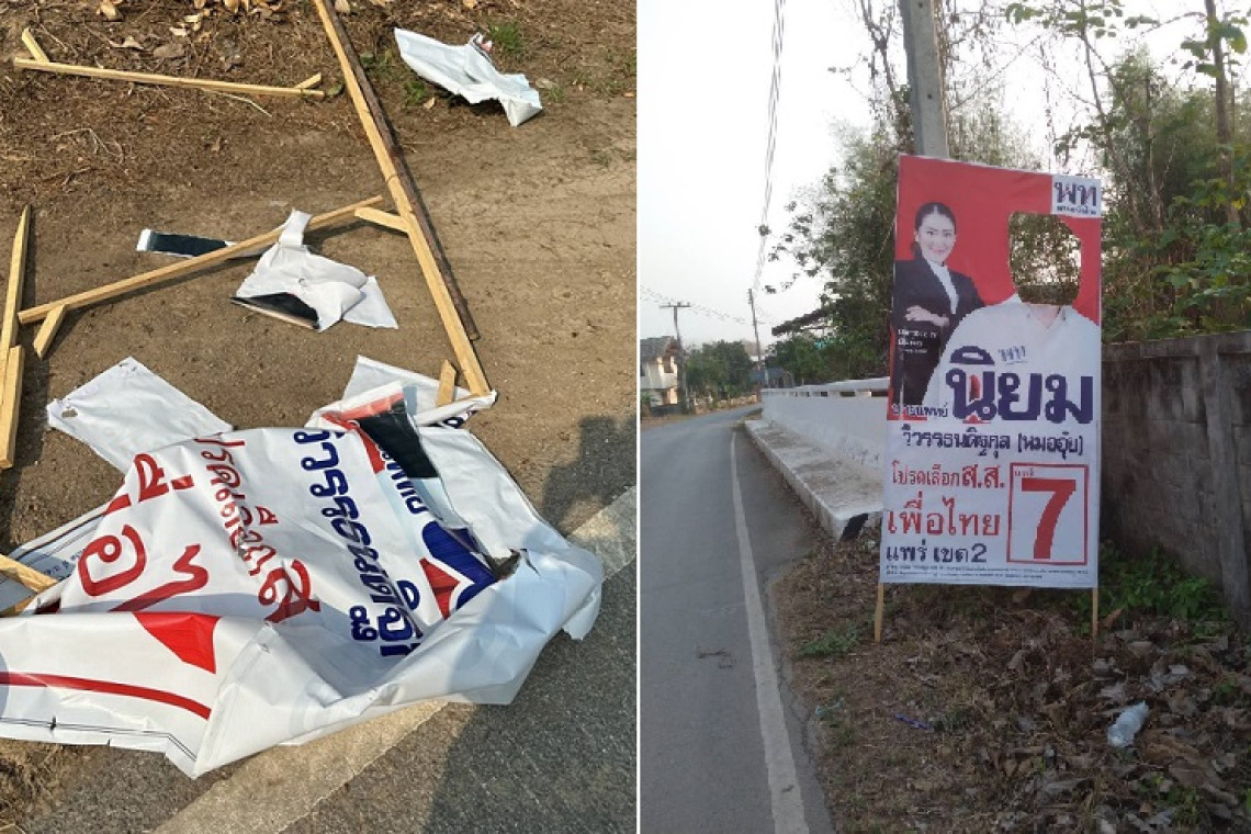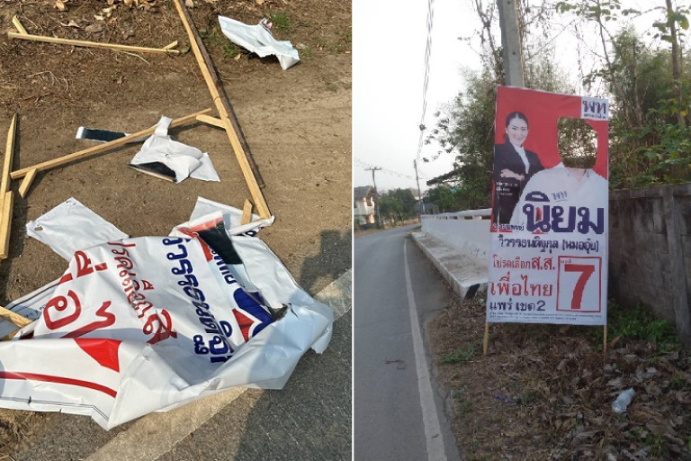 วันที่ 30 เมษายน 2566 ผู้สื่อข่าวรายงาน ว่า ที่เขตเลือกตั้งที่ 2 บริเวณหน้าโรงเรียนแม่คำมีศรีภูมิ ต.แม่คำมี อ.เมือง จ.แพร่ ป้ายหาเสียงของผู้สมัครพรรคเพื่อไทย เขต 2 คือ นายแพทย์นิยม วิวรรธนดิฐกุล ผู้สมัคร ส.ส.แพร่ เขต 2 เบอร์ 7ถูกทำลายนับสิบป้ายทั้งป้ายตัวผู้สมัคร และ ป้ายนโยบายพรรค ตกเรี่ยราดข้างทางที่ติดป้าย โดยทีมทำงานของนายแพทย์นิยมได้บันทึกไว้เป็นหลักฐาน
