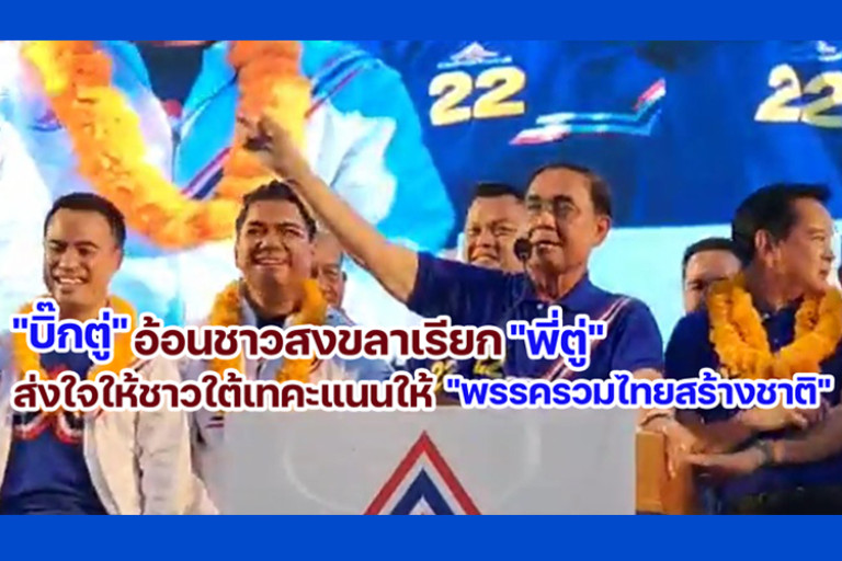 เพจเฟซบุ๊ก พรรครวมไทยสร้างชาติ United Thai Nation Party ได้เผยแพร่คลิปวีดิโอไลฟ์สด เมื่อวันอาทิตย์ที่ 30 เมษายน 2566 ที่ผ่านมา โดยมี พล.อ.ประยุทธ์ จันทร์โอชา นายพีระพันธุ์ สาลีรัฐวิภาค หัวหน้าพรรค พร้อมคณะผู้บริหารพรรครวมไทยสร้างชาติ ขึ้นเวทีปราศรัยที่แยกสะพานดำ อ.หาดใหญ่ จ.สงขลา