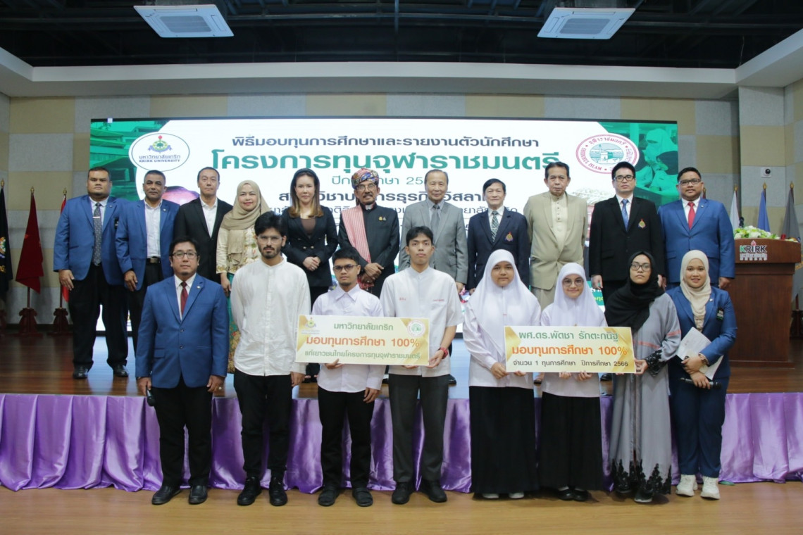 เมื่อวันที่ 2 พฤษภาคม 2566 ศ.ดร.นพ.กระแส ชนะวงศ์ อธิการบดี มหาวิทยาลัยเกริก ได้รับเกียรติจากอาจารย์ประสาน ศรีเจริญ ผู้แทนจุฬาราชมนตรี ในการมอบทุนการศึกษา 100% จำนวน 5 ทุนให้กับนักศึกษาที่ผ่านการคัดเลือกโครงการทุนจุฬาราชมนตรี ประจำปีการศึกษา 2566 โดยมีผู้ที่ได้รับดังนี้ 1.นายมุสตานีดร์ สุขกุดี จากโรงเรียน Khalid bin Al waleed school ประเทศสหรัฐอาหรับเอมิเรต เอกอุตสาหกรรมฮาลาล 2. นายอุสมัน อัมนีฮียา วิทยาลัยเทคนิคยะลา เอกการเงินอิสลาม 3.นางสาวมินตรา จันทร์ขาว โรงเรียนอิสลามสันติชนเอกการจัดการบริการฮัจย์และอุมเราะห์ 4.นายนรวิทย์ พุ่มประดิษฐ์ โรงเรียนอัลกุรรออ์วิทยา เอกการเงินอิสลาม และ 5.นางสาวรอฆ๊อด เจ๊ะเล๊าะ โรงเรียน Saudi schools in Kuala Lumpur ประเทศมาเลเซีย เอกการเงินอิสลาม