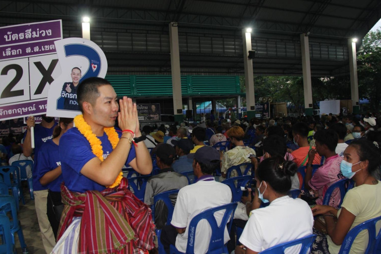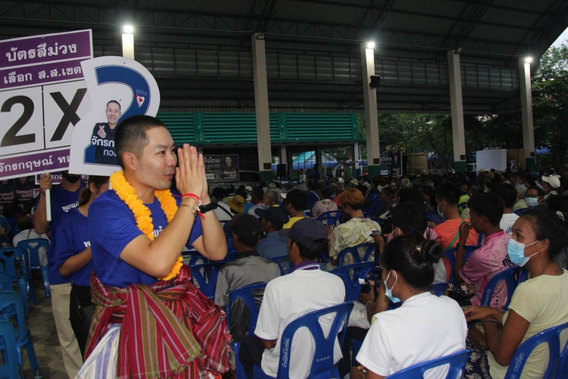 เมื่อเวลา 18.00 น. วันที่ 5 พ.ค.66 ผู้สื่อข่าวรายงานการปราศรัยหาเสียงในช่วงโค้งสุดท้าย ในการเลือกตั้งสมาชิกสภาผู้แทนราษฎร (ส.ส.) ทั้ง 10 เขตเลือกตั้ง ของพรรคการเมืองต่างๆ ในพื้นที่ จ.บุรีรัมย์ ว่า นายจักรกฤษณ์ ทองศรี หลานชาย ‘ทรงศักดิ์ ทองศรี’ รมช.มหาดไทย ผู้สมัคร ส.ส.บุรีรัมย์ เขต 10 เบอร์ 2 พรรคภูมิใจไทย ได้จัดเวทีปราศรัยย่อย ณ บริเวณโดมเอนกประสงค์ โรงเรียนอนุบาลประโคนชัย (อำนวยกิจ) ต.ประโคนชัย อ.ประโคนชัย จ.บุรีรัมย์ โดยมีประชาชนให้ความสนใจ เดินทางมาร่วมรับฟังกว่า 1,000 คน