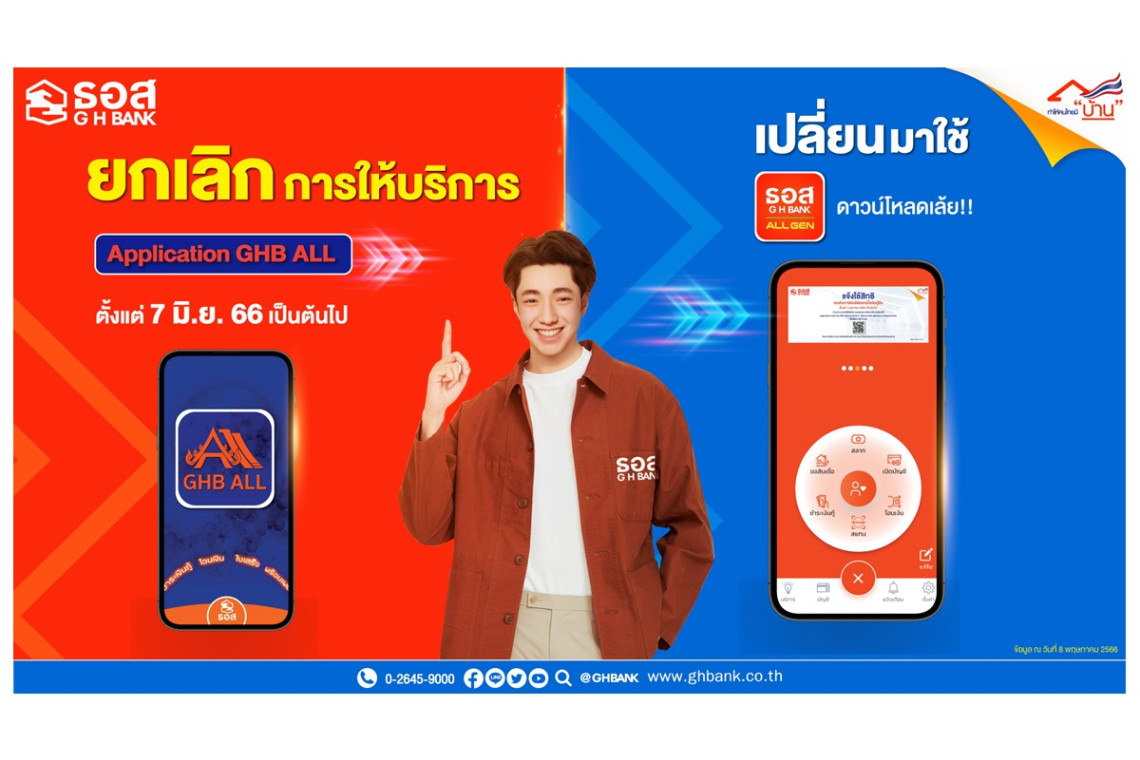 ธอส.ยกระดับการบริการด้านดิจิทัลเต็มรูปแบบกับ Application : GHB ALL GEN พร้อมยกเลิกให้บริการ GHB ALL ตั้งแต่ 7 มิถุนายน 2566 เป็นต้นไป