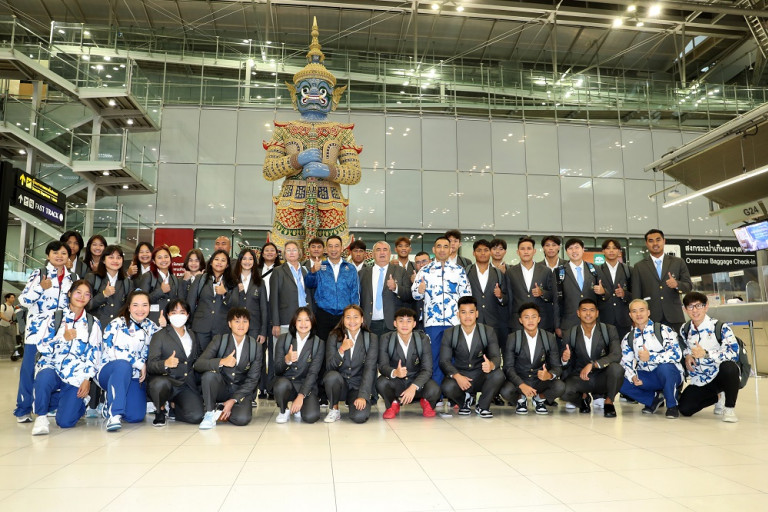 วันที่ 10 พฤษภาคม 2566 ณ ท่าอากาศยานนานาชาติสุวรรณภูมิ ทัพนักกีฬาโปโลน้ำทีมชาติไทย รวมตัวกันเพื่อเตรียมออกเดินทางสู่ประเทศกัมพูชา ในการเข้าร่วมการแข่งขันศึกซีเกมส์ ครั้งที่ 32 ณ กรุงพนมเปญ ประเทศกัมพูชา โดยทัพนักกีฬาโปโลน้ำทีมชาติไทย ทั้งทีมชายและทีมหญิง รวม 26 คน พร้อมทีมผู้ฝึกสอน ออกเดินทางสู่ประเทศกัมพูชา ด้วยสายการบินบางกอกแอร์เวย์ เที่ยวบินที่ PG931 เพื่อเข้าร่วมการแข่งขันซีเกมส์ ครั้งที่ 32 ระหว่างวันที่ 12-16 พฤษภาคม 2566 ณ ราชอาณาจักรกัมพูชา โดยมี พลเอก สรศักดิ์ ขาวกระจ่าง ประธานฝ่ายกีฬาโปโลน้ำสมาคมกีฬาว่ายน้ำแห่งประเทศไทย และ นาวาเอก คชพล งามชาลี รองประธานฝ่ายกีฬาโปโลน้ำสมาคมกีฬาว่ายน้ำแห่งประเทศไทยและผู้จัดการทีมโปโลน้ำทีมชาติไทย เดินทางมาส่งพร้อมทั้งให้กำลังใจนักกีฬา ท่ามกลางบรรยากาศพ่อแม่ผู้ปกครองที่มาร่วมส่งนักกีฬากันอย่างคึกคัก