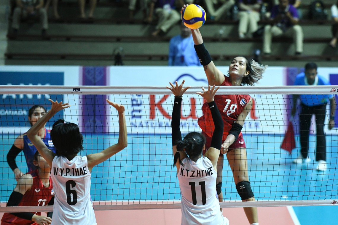 การแข่งขันวอลเลย์บอลหญิงกีฬาซีเกมส์ ครั้งที่ 32 ประเทศกัมพูชา ที่สนาม อินดอร์ ฮอลล์ เนชั่นแนล คอมเพล็กซ์ วันนี้ (10 พ.ค.) เป็นการแข่งขันนัดที่ 2 โดยทีม "วอลเลย์บอลหญิงทีมชาติไทย" ลงสนามพบกับ ทีมชาติเมียนมา โดย ทีมสาวไทย ชนะ เมียนมา 3 เซ็ตรวด ด้วยคะแนน 25 - 8 , 25 - 8 และ 25 – 6 ทำให้ทีมสาวไทย ลงสนาม 2 เกม เก็บ 6 คะแนน รั้งอันดับ 1 ของกลุ่มA การันตีเข้ารอบ 2 แน่นอนแล้ว