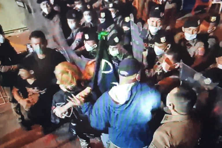 เมื่อเวลา 19.00 น.วันที่ 10 พ.ค.ที่สน.สำราญราษฎร์ กลุ่มมวลชนนักเคลื่อนไหวทางการเมือง กว่า 20 คนรวมตัวทวงถามต่อ ผู้กำกับ สน. สำราญราษฎร์ กรณีเมื่อช่วงเช้านี้ทางพนักงานสอบสวน สน.สำราญราษฎร์ เดินทางไปแจ้งข้อกล่าวหาเพิ่มเติมกับ น.ส. ธนลภย์ หรือหยก เยาวชนอายุ 15 ปีที่สถานพินิจบ้านปรานี เพิ่มเติมในข้อหาความผิด ตาม พ.ร.บ.โบราณสถาน โดยมีเจ้าหน้าที่ควบคุมฝูงชน กว่า 50 นาย ยืนตรึงกำลัง บริเวณด้านหน้า สน. พร้อมกับนำรั้วเหล็กมากั้น เพื่อป้องกันมวลชนไม่ให้เข้าไปก่อความวุ่นวายด้านใน