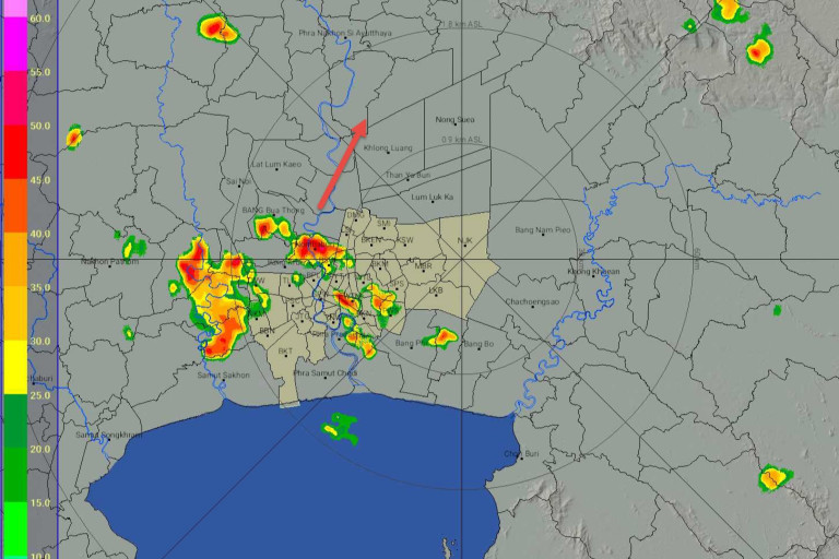 วันที่ 11 พ.ค.2566 ศูนย์ป้องกันน้ำท่วม สำนักนักระบายน้ำ กทม.รายงานสถานการณ์กลุ่มฝน เวลา 11.00 น. กทม.มีฝนเล็กน้อยถึงปานกลางเขตบางซื่อ จตุจักร คลองเตย วัฒนา บางกะปิ ห้วยขวาง หนองแขม บางแค ทวีวัฒนา /เคลื่อนตัวทิศตะวันออกเฉียงเหนือแนวโน้มคงที่ ฝนรวมสูงสุดที่คลองเตย 9.0มิลลิเมตร